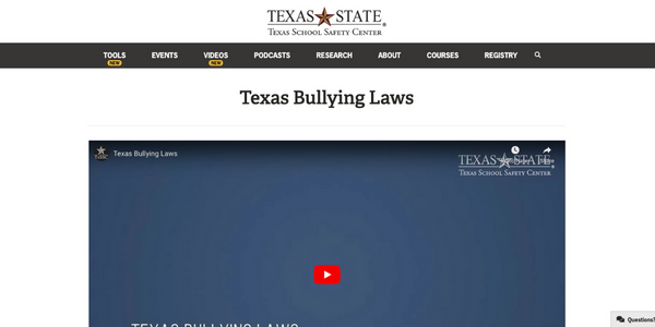 Texas Bullying Laws (Texas School Safety Center – TX State University)