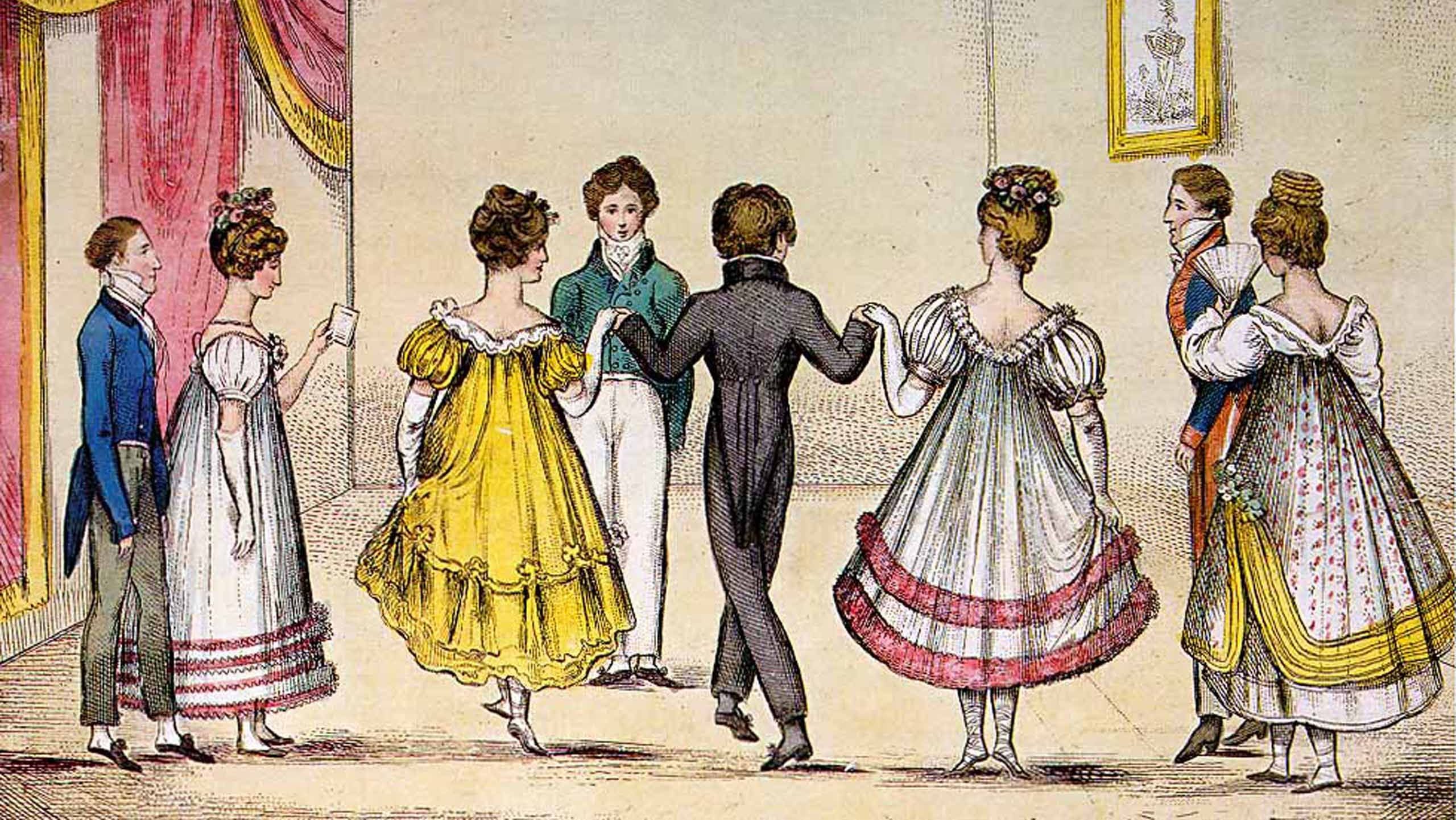 English Dance S.A. features English Country Dances–some from the 1500s, through the Regency Era, into the 1900s, and some written in modern times. English Country Dances are often thought of as elegant and genteel (and many of them are!), but some are also rowdy, fast, and demanding. The dances are frequently done in longways sets “for as many as will” (like contra), but there are also dances for 3, 4, 5 couples, some circle dances, and some square dances. Pre-recorded music will be used.