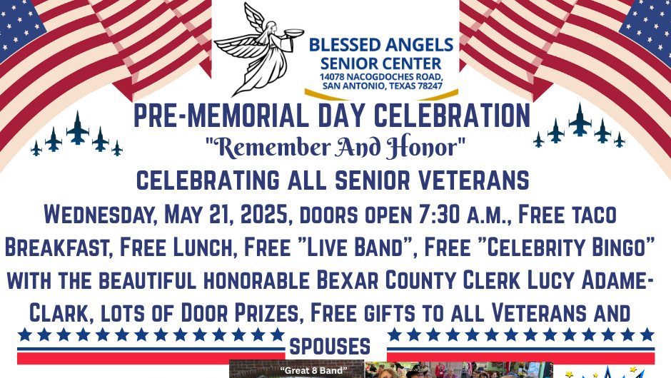 Seniors 60 and over, get ready for a “Fun” Pre-Memorial Day Celebration! Lots and lots of great prizes, free breakfast, lunch, Celebrity Bingo, and a Live Band.