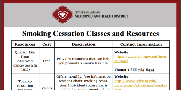 Smoking Cessation Classes and Resources from the City of San Antonio.