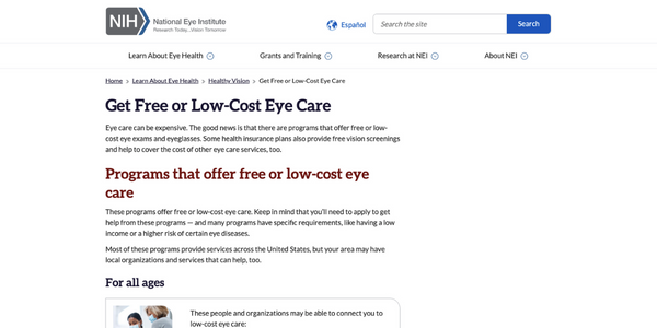 Free or Low Cost Eye Care (National Eye Institute)